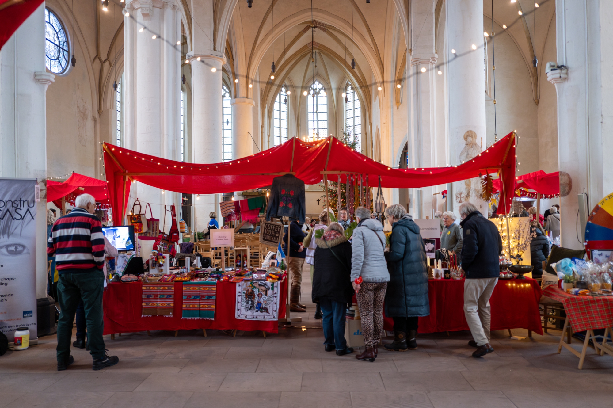 Een grote groep vrijwilligers heeft ook dit jaar mee gewerkt om de markt op vrijdagochtend voor te bereiden en de kerkruimte gezellig in te richten en sfeervol te maken. Maar ook boden zij zich aan om op zaterdagmiddag na afloop van de markt de kerk weer op te ruimen zodat de kerk weer in pico bello staat kon worden opgeleverd.